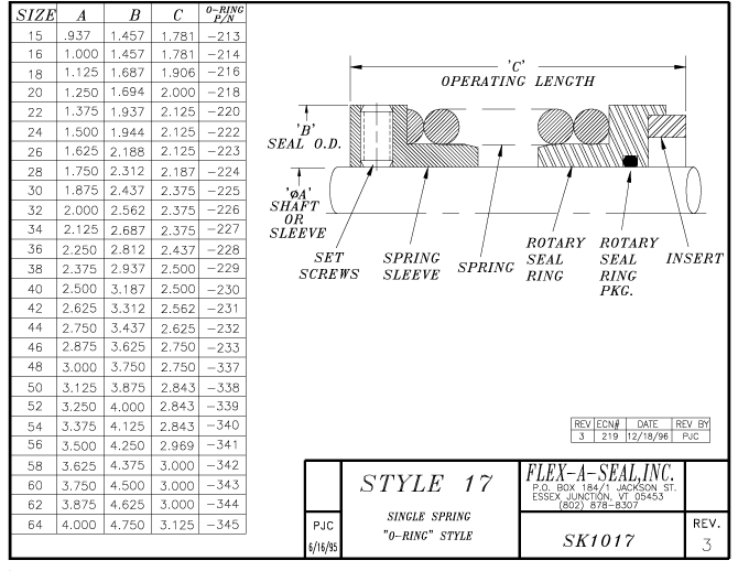 Note: Max Temperature / pressure / speed indicate operating extremes independently and do not imply the seal will function at these extremes at the same time. Contact Flexaseal Engineered Seals and Systems, LLC if in doubt.