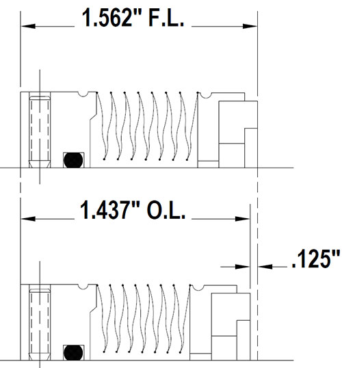 Free Length – Operating Length = amount of compression 1.562″(FL) – 1.437″ (OL) = 0.125″ (amount of compression)