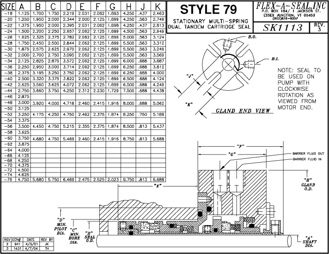 The Flexaseal Style 79A tandem cartridge seal is specifically designed for ruggedness and durability to withstand services were leakage and emissions must be completely contained. Design elements include retained faces to allow for pressurized or unpressurized barrier systems, stationary design for maximum runout compensation and pilot gland to positively center the seal.