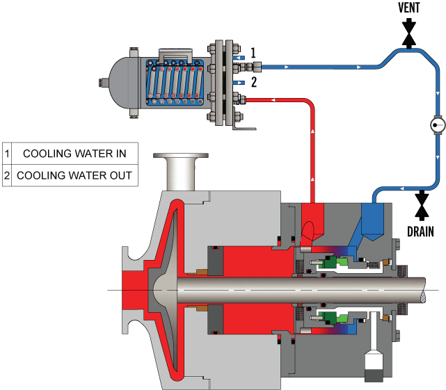 • Seal has an internal circulating device (pumping ring) that circulates seal chamber fluid through a cooler and back to the seal chamber.