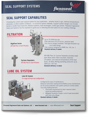 API Range of Seals For the Oil & Gas Industry Company Brochure Mechanical Seal Repair Program Fully Split Cartridge Mechanical Seal Support Systems Overview