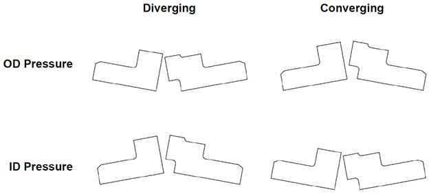 If the seal deflects so that the faces are diverging away from the high-pressure side, then flow to the fluid film is pinched off and will collapse. Without a fluid film the mechanical seal runs dry and will certainly fail.